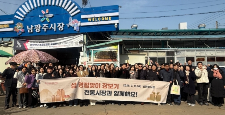 [AI 호남뉴스]광주문화재단은 2월 13일 설 명절을 앞두고 지역 전통시장 활성화와 지역경제 상생을 위해 남광주시장에서 임직원이 참여하는 전통시장 장보기 행사를 진행했다. 이번 행사는 설 명절을 맞아 임직원들이 직접 전통시장을 방문해 명절 준비 물품을 구매함으로써 전통시장 이용을 장려하고, 지역 상인들과의 교류를 통해 따뜻한 명절 분위기를 조성하고자 마련됐다. 이날 행사에는 광주문화재단 임직원 약 80여 명이 참여해 온누리상품권을 활용하여 가족과 함께 나눌 명절 음식과 생활용품을 구매하는 등 전통시장 소비 촉진에 동참했다. 광주문화재단 배동환 사무처장은 “전통시...