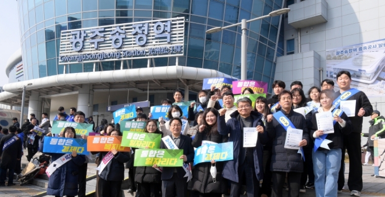 [AI 호남뉴스]광주광역시는 14일 광주송정역에서 설 명절 귀성객을 대상으로 KTX 호남선 단계적 증편과 광주전남 통합 소식을 알리기 위한 홍보 캠페인을 펼쳤다. 이번 캠페인은 그동안 광주시가 국토교통부에 지속적으로 건의해 온 KTX 호남선 증편 결과를 시민에게 알리고, 향후 단계적 증편 계획을 공유하기 위해 마련했다. 또한 최근 광주전남의 통합 추진 현황 및 기대효과 등을 함께 홍보했다. 이날 캠페인에는 강기정 시장과 공직자 20여명이 참여했다. 공직자들은 현장에서 시민에게 KTX 호남선 단계별 증편 정보와 행정통합 정보를 담은 홍보 전단지를 건넸다. 또한 행정...