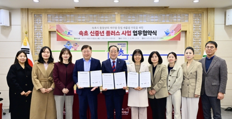 [AI 호남뉴스]속초시가 서울시50플러스재단, 고용노동부 강릉지청과 업무협약을 체결하고 신중년의 새출발 지원에 나선다. 협약체결은 3월 12일 속초시청 본관 2층 상황실에서 이뤄졌다. 이번 협약은 46세 이상 65세 미만 속초시민의 재취업과 창업에 필요한 각종 자격 취득과 기술 교육 이수 비용의 일부를 지원하는 ‘속초 신중년 플러스 사업’의 원활한 운영을 위해 마련됐다. 속초시를 비롯한 참여 기관들은 오랜 경험과 역량을 지닌 신중년층이 다시 일할 기회를 찾고 새로운 출발을 할 수 있도록 지원하기 위해 뜻을 모았다. 협약에 따라 속초시는 사업 추진과 함께 협약기관...
