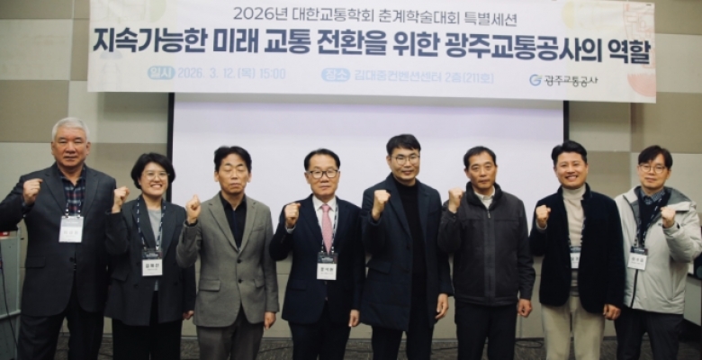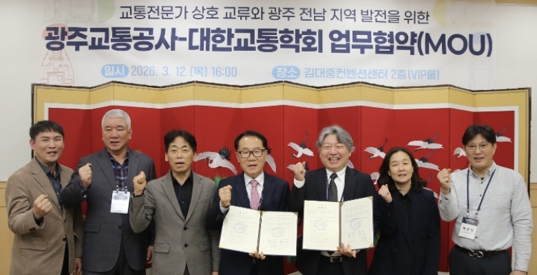 [AI 호남뉴스]광주교통공사가 국내 최대 규모의 교통 학술행사인 ‘2026 대한교통학회 춘계학술대회’를 계기로 지역 교통 현안 해결과 미래 교통 체계 구축을 위한 본격적인 행보에 나섰다. 공사는 12일 광주 김대중컨벤션센터에서 열린 2026 대한교통학회 춘계학술대회에서 대한교통학회(학회장 유정훈)와 ‘광주·전남 지역 교통 문제 해결 및 지역사회 발전을 위한 업무협약(MOU)’을 체결했다고 밝혔다. 이번 협약은 학술대회의 광주 개최를 계기로 ▲광주·전남 지역 교통 현안 공동 해결 및 연구수행 ▲지역 철도 노선 발굴 및 정책 건의 ▲교통 전문가 상호 교류 ▲학술대회 ...