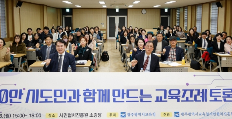 [AI 호남뉴스] 광주시교육청은 16일 광주시교육청시민협치진흥원 소강당에서 ‘시도민과 함께 만드는 교육조례 토론회’를 개최했다. 이번 토론회는 ‘전남광주통합특별시’ 설치 특별법 조례가 내실있게 제정될 수 있도록 다양한 시도민 의견을 청취하기 위해 마련됐다. 시도민이 자치교육의 방향을 논의하는 첫 공론장이다. 토론회는 광주교육협치회의 위원, 학생, 학부모, 교직원, 광주·전남 교육활동가 등 80여 명이 참여한 가운데 이기우 인하대 명예교수와 이정선 교육감의 발제에 이어 7개 주제별 분임 토론 순으로 진행됐다. 특히 특별법 제77조에 따라 조례로 위임된 ▲지역교육발...
