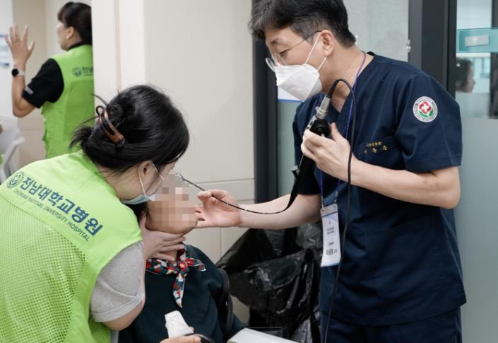 전남대병원 의료진 30여 명은 내과, 이비인후과, 재활의학과, 치과 등 진료를 비롯해 혈압‧혈당, 혈액, 심전도, 골밀도 등 검진, 만성 질환 관리를 위한 건강상담 등의 봉사활동을 했다.