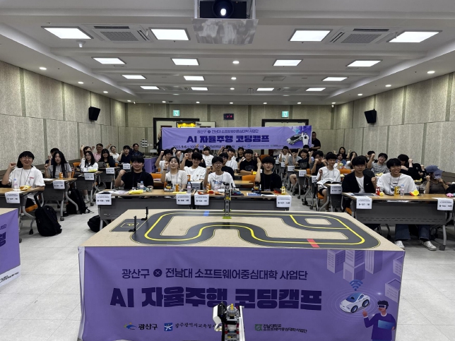 11일 전남대에 따르면 소프트웨어중심대학사업단(단장 김경백 교수)은 광산구청, 광주광역시교육청시민협치진흥원과 공동으로 ‘AI 자율주행 코딩캠프’를 개최했다. 이번 캠프에는 지역 내 15개 고등학교 학생 80여 명이 참여했으며, 지난 9월 8일 성황리에 마무리됐다.