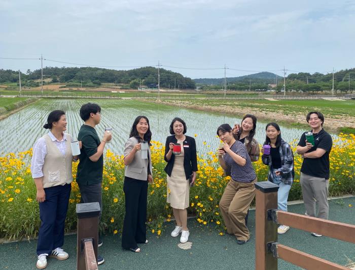 ![]() 건강증진과 직원들이 개인 텀블러를 사용하고 있다. |