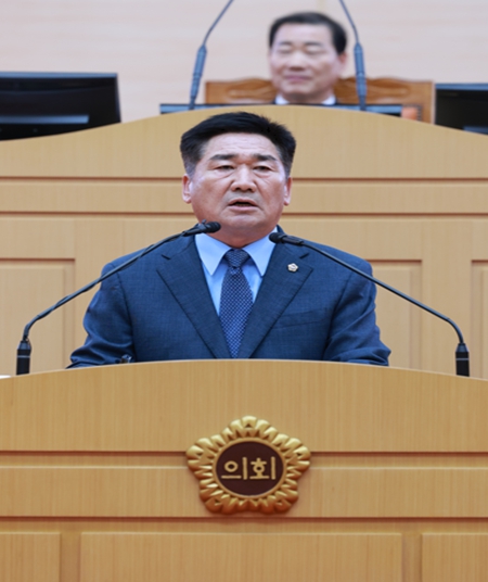 ![]() 김성일 도의원이 지난 9월 16일 본회의장에서 도정질문은 하고 있다. |