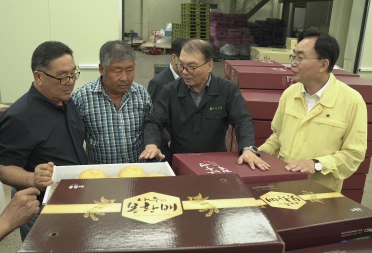 나주시는 지난 17일 윤병태 시장이 참석한 가운데 추석 대목을 맞아 나주배의 안정적인 유통과 품질 관리를 확인하기 위해 봉황농협 산지유통센터 현장을 찾았다고 18일 밝혔다.