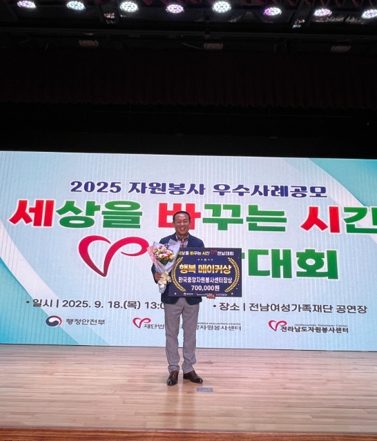 ![]() 18일 한국중앙자원봉사센터장상을 수상한 무안군 자원봉사자 이창준 씨 |