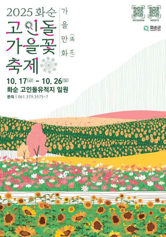 ‘가을꽃이 만개하다’라는 뜻의‘가을만화(滿花)’를 주제로 열리는 이번 축제는 유네스코 세계문화유산인 화순 고인돌 유적지의 광활한 대지에 만개한 코스모스, 해바라기 등 다채로운 가을꽃의 향연과 함께 축제의 정체성을 강화한 새로운 볼거리와 체험프로그램으로 관람객을 맞는다.