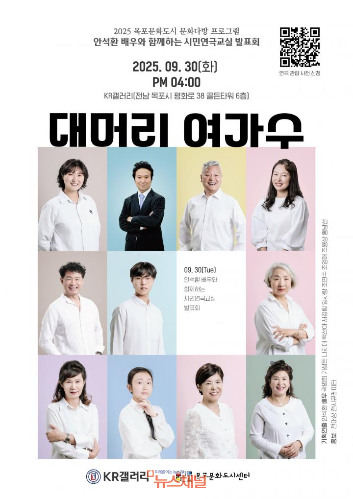Mokpo KR Gallery (Director Oh Sang-won) will hold the Citizen Theater Class performance on Tuesday, September 30, 2025, at 4:00 PM on the 6th floor of KR Gallery, Golden Tower, 38 Pyeonghwa-ro, Mokpo.
