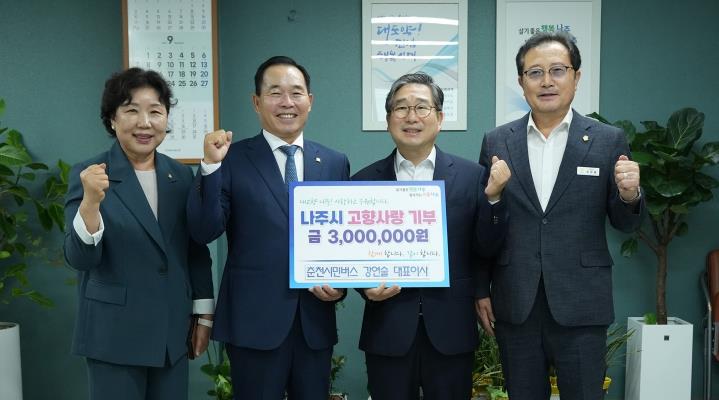 ![]() 춘천시민버스 강연술 대표, 나주시에 고향사랑기부금 300만 원 기탁 |