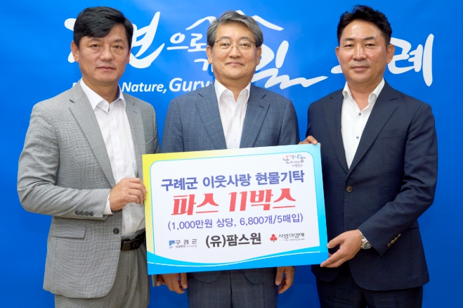 ![]() (유)팜스원, 구례군에 파스 1천만 원 상당 기탁 |