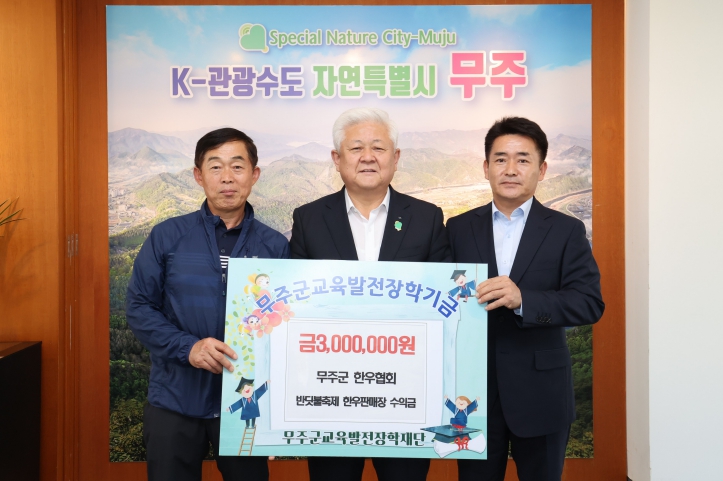 이날 전달된 장학금은 제29회 무주반딧불축제 기간에 진행한 ‘한우 판매 행사’를 통해 얻은 수익금 중 일부로 알려져 훈훈함을 더하고 있다.