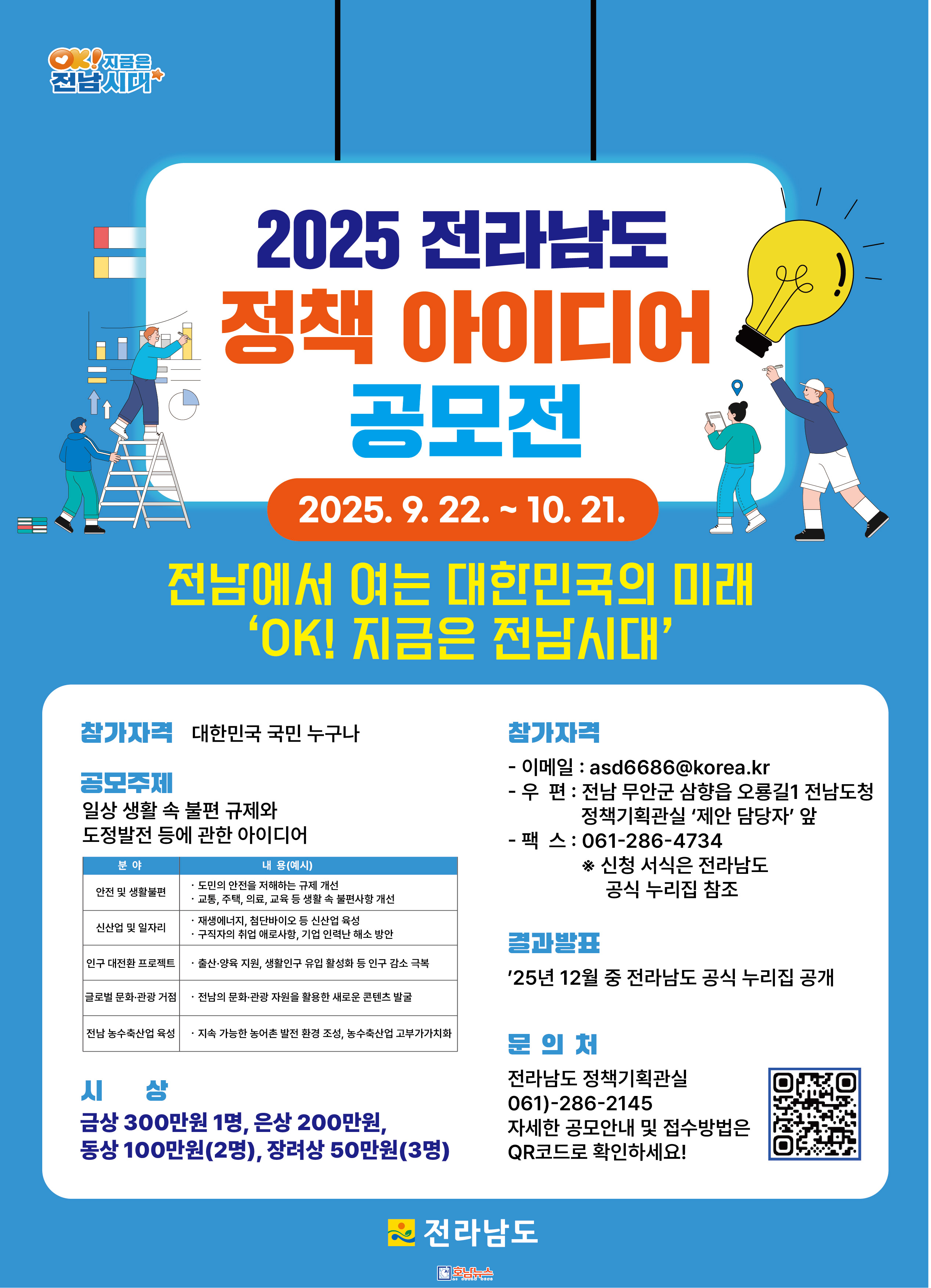 Jeollanam-do has announced the launch of the “2025 Policy Idea Contest” in line with the new government’s pragmatic direction, aiming to develop policies together with the public.
