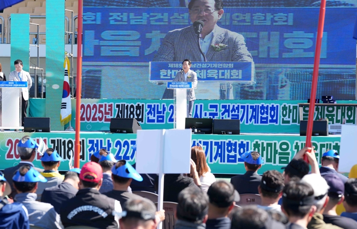![]() 김영록 전라남도지사가 11일 해남 우슬체육공원에서 열린 ‘(사)건설기계개별연명사업자협의회 한마음 체육대회’에 참석해 인사말을 하고 있다. |