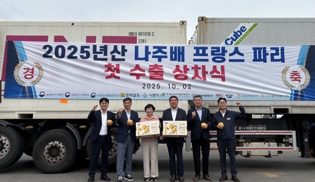 나주시(시장 윤병태)는 최근 장현순 네시피F&B 대표, 이동희 나주배원예농협 조합장, 최명수 전남도의원 등 관계자가 참석한 가운데 나주배 프랑스 첫 수출 상차식을 진행했다고 14일 밝혔다.