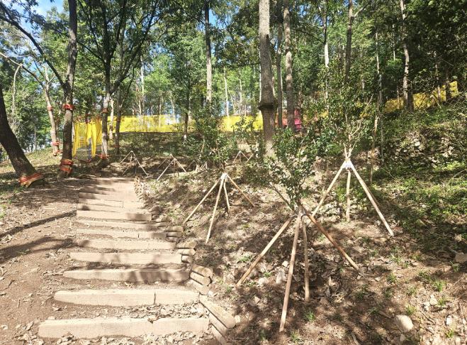 기존의 우수한 임상을 보존하면서 불량임지와 공한지 등 산림경관을 저해하는 요소들을 정비하고 경관조성을 위한 애기동백과 맥문동을 식재했다.