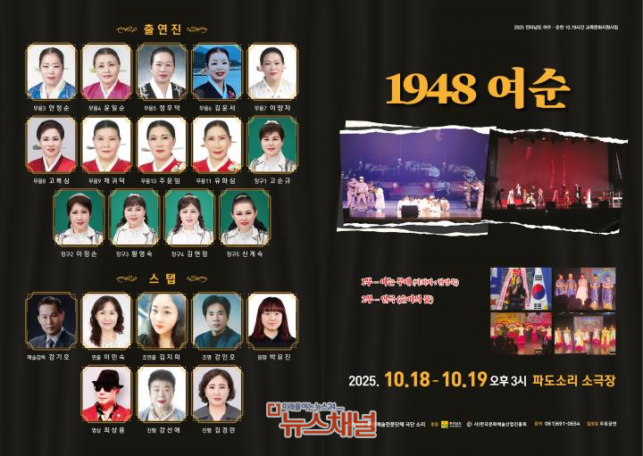 The theater troupe Sori will stage the play 1948 Yeosu at 4 p.m. on the 18th and 19th at the Pado Sori Small Theater in Yeosu. Through local songs, poetry, and choreography, the production emotionally portrays the realities of Yeosu in 1948 and the tragic significance of the incident, conveying historical empathy and healing through art.
