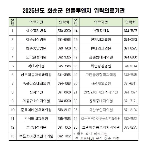 ![]() 2025년도 화순군 인플루엔자 위탁의료기관 |
