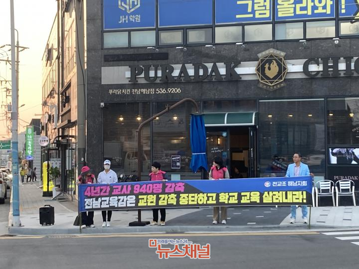 ![]() 해남교육지원청 교원감축 켐페인 / 사진제공=전교조해남군지회 |
