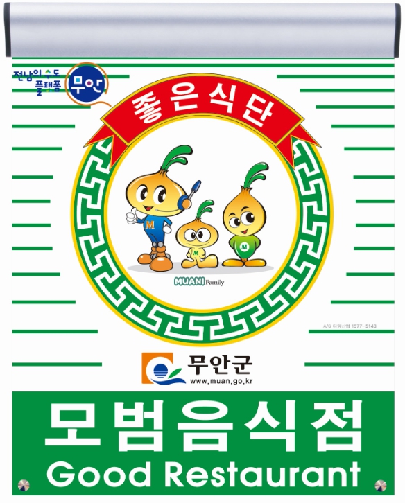 ![]() 무안군 모범음식점 지정 표지판 및 무안군보건소 전경 |