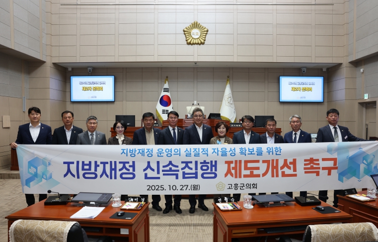 이에 고흥군의회는 건의문을 통해 △지방자치단체의 예산 자율성을 침해하는 신속집행 제도 개선 △집행률 위주의 평가 및 불필요한 보고 관행 개선 △사업 품질과 실질적 성과를 고려한 합리적 재정운용체계 확립 등을 정부에 요청했다.