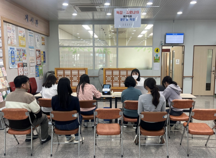 ![]() 독감 예방접종 문진표를 작성하고 있는 곡성군 주민들 |