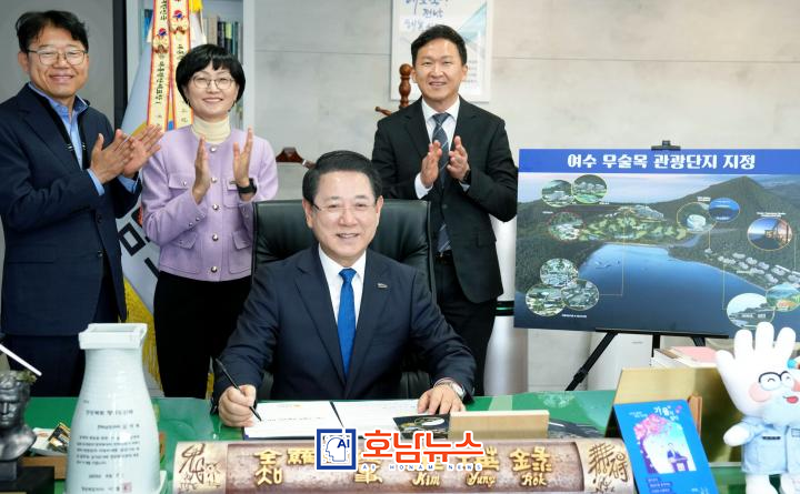 ![]() 김영록 전라남도지사 여수 무술목 관광단지 지정 승인 서명 / 사진제공=전라남 |