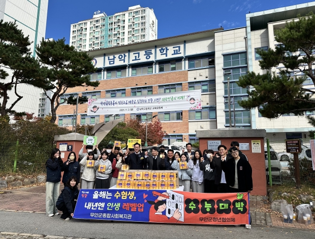이날 행사에는 무안군종합사회복지관 직원들과 무안군청년협의체 회원 등 30여 명이 함께 참여하여 수험생들에게 ‘올해는 수험생, 내년에는 인생 레벨업’메세지와 함께 정성스럽게 준비한 응원물품을 전달하며, 따뜻한 마음을 전달했다.
