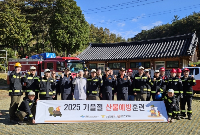 훈련은 무위사 인근에서 산불이 발생한 상황을 가정해 진행됐으며, ▲초기 대응 및 진화체계 점검 ▲유관기관 간 임무 분담 및 공조체계 확립 ▲문화재 보호 중심의 화재 확산 방지 등 실질적인 대응훈련에 중점을 두었다.