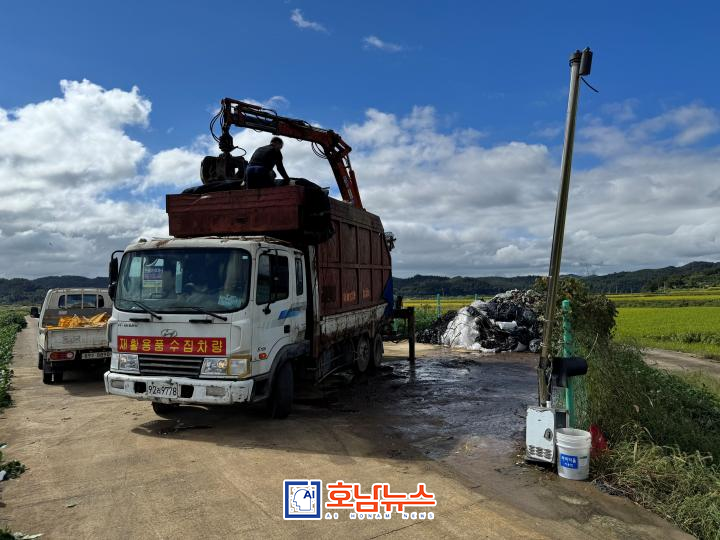 전남도는 기후에너지환경부의 국고 지원사업으로 추진되는 수거보상금 제도를 통해, 농가가 마을 단위 공동집하장에 폐기물을 배출하면 보상금을 지급한다.
