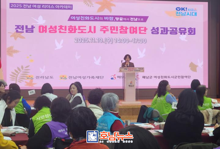 The province held the 2025 Jeonnam Women-Friendly City Resident Committee Performance Sharing Conference on the 19th at the Haenam Culture & Arts Center, where resident representatives from nine Women-Friendly Cities discussed strategies for improving daily living conditions and strengthening safety policies.