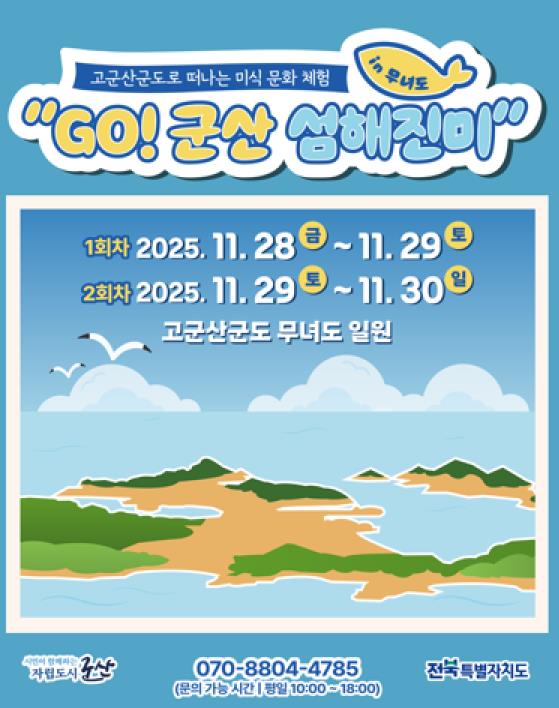 ‘GO! 군산 섬해진미’는 군산에서 처음으로 선보였으며, 고군산군도의 바다·식재료·어촌문화를 깊이 이해할 수 있도록 기획된 1박 2일 체류형 미식관광 체험 프로그램이다.
