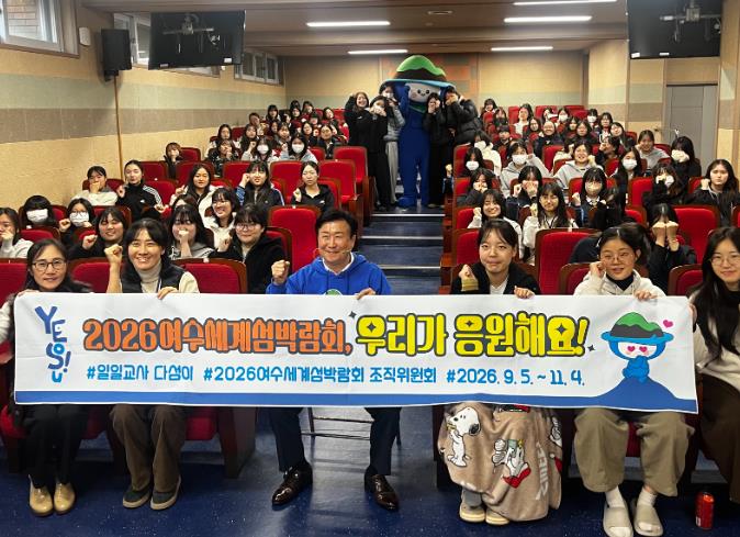지난 7월 정보과학고등학교에 이어 두 번째로 정기명 조직위원장은 관내 학생들에게 섬박람회의 취지와 중요성을 설명하고 콘텐츠를 소개했다.