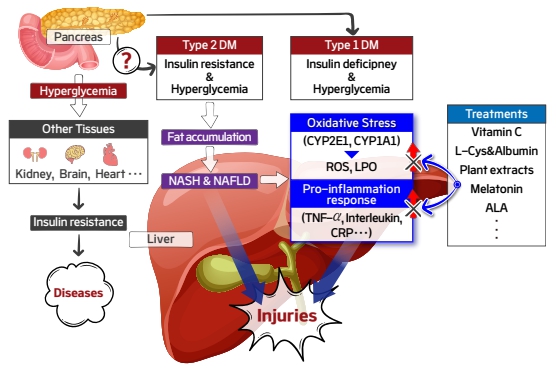 이번에 선정된 논문'Therapeutic treatments for diabetes mellitus-induced liver injury by regulating oxidative stress and inflammation'은 산화 스트레스와 염증 기전을 조절하여 당뇨로 인한 간 조직 손상을 치료할 수 있는 후보 물질의 효과를 규명한 연구다.
