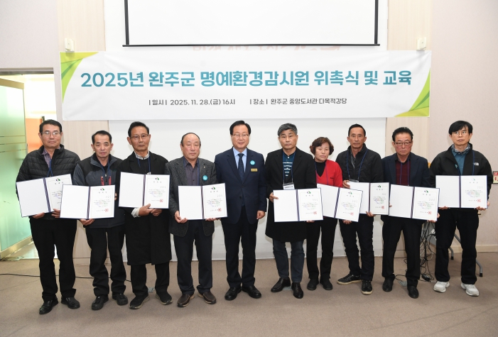 명예환경감시원은 읍·면별 4~5명씩 총 56명이 위촉됐으며, 이들은 환경오염행위 감시, 주민 계도, 순찰 등 사전 예방 활동을 맡게 된다. 이장협의회장, 주민자치위원장, 공동주택 입주자대표 등 지역 리더들이 참여해 책임성과 대표성을 강화했다.