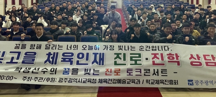 ![]() 광주시교육청이 지난 29일 광주광역시교육청교육연수원에서 학생 선수, 학부모, 학교 운동부 지도자 등이 참석한 가운데 ‘2025 빛고을 체육인재 진로‧진학 상담 Day’를 개최했다. |