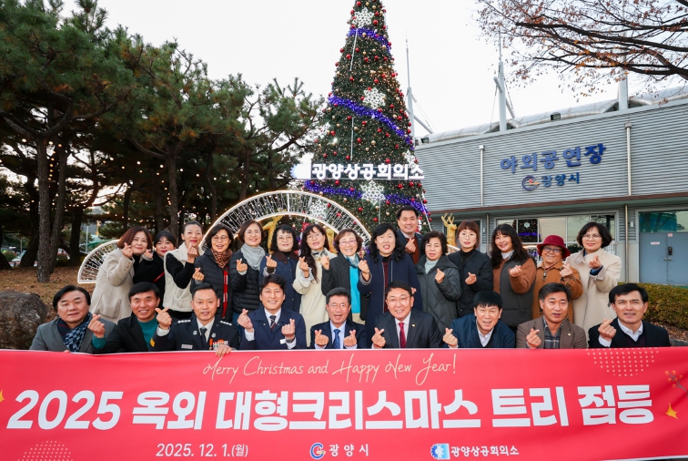 정인화 광양시장은 “작년에 이어 올해도 크리스마스트리가 환하게 빛날 수 있도록 후원해주신 광양상공회의소에 깊이 감사드린다”며 “오늘 점등식은 한 해를 다독이고 다가오는 새해의 희망을 나누는 자리로, 오늘 밝힌 이 빛이 시민 여러분의 마음속에 따뜻하게 머물길 바란다”고 말했다.