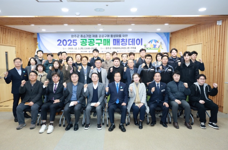 한편, 이번 공공구매 매칭데이는 완주군의회, 고용노동부 전주지청, 전북지방중소벤처기업청, 전북지방조달청, 완주산단진흥회 등 6개 기관이 공동 주관해 추진됐다.