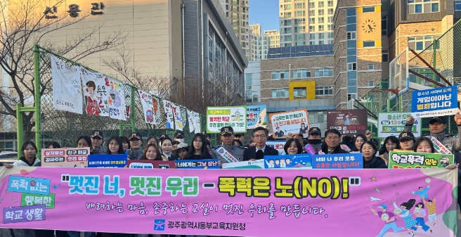 캠페인은 광주광역시교육청, 동부교육지원청, 학교, 광주경찰, 북부경찰, 북구청, 학부모 단체 등 50여 명이 참여해 현수막, 피켓, 어깨띠를 활용하여 학교폭력과 청소년 비행 예방의 중요성을 알리는 홍보활동을 전개했다.