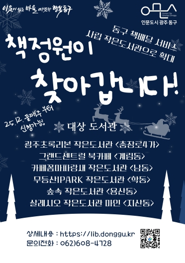 책 배달 서비스 및 기타 자세한 사항은 동구 도서관 누리집을 참고하거나 인문도시정책과 도서관팀으로 문의하면 된다.