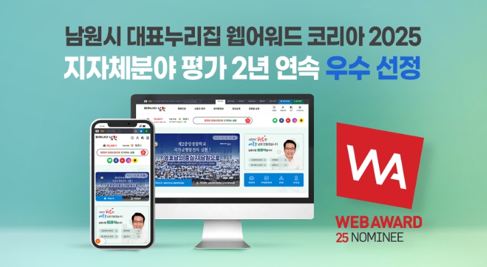 남원시 대표 누리집은 여러 가지 웹 환경을 고려해 체계적인 구성과 명확한 구획정리로 딱딱한 분야의 웹사이트 이미지를 탈피했으며, 문자 알림, 전자 점자, 모바일 음성인식 검색 등 다양한 기능성 서비스 지원 및 매끄럽고 응답 속도가 빨라 사용자 경험이 우수한 것으로 평가받았다.