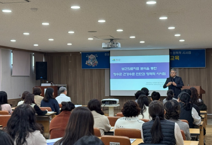 이번 교육은 원광대학교 의과대학 이영훈 교수를 초빙해 진행됐으며 지역 보건의료 현장에서 활용 가능한 보건·건강통계 지표의 개념과 해석 방법, 지표 분석을 통한 장수군민의 건강수준 진단, 이를 정책에 연계하는 과정 등을 중심으로 구성됐다.