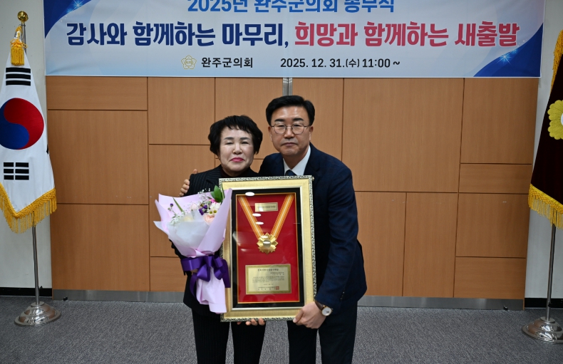 ![]() 완주군의회 이경애 의원, '전북 지방의정봉사상' 수상 |