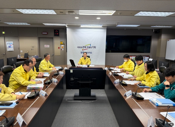 이날 회의에서는 도 관계부서와 14개 시군이 참여해 대설·한파·강풍 대책을 점검하고 대응 방안을 논의했다. 주요 대책으로는 △ 취약구간(교량, 터널, 고갯길, 경사로 등) 및 상습결빙구간 제설제 집중 살포 △ 습설대비 5대 취약분야(붕괴, 전도, 미끄러짐, 정체, 고립) 예찰 강화 및 안전조치 실시 △ 한파 취약계층 관리방안 △ 한파 쉼터 및 응급대피소 개방시간 확대 △ 임시주거시설 및 구호물품 비축 점검 △ 낙하우려 시설물(간판, 나무 등) 안전조치 실시 등이 논의됐다.