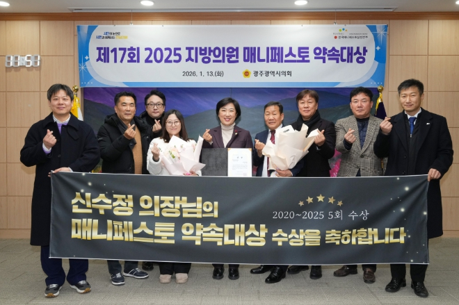 이번 수상으로 신수정 의원은 광역지방의원 매니페스토 약속대상 5관왕을 달성하며, 공약 이행과 입법 성과 전반에서 지속적인 성과를 인정받았다.