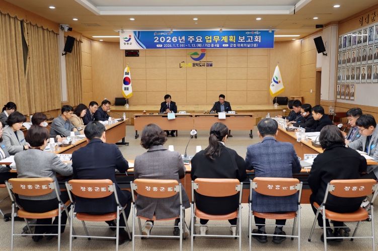 보고회에는 김성 장흥군수를 비롯해 실과소장, 팀장이 참석했으며, 전년도 업무 성과와 2026년 중점 추진사항 및 주요 시책을 공유했다.