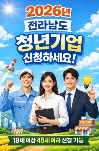 전남도 청년기업 인증을 바라는 기업은 전남도 누리집 고시·공고란의 ‘2026년 전남도 청년기업 인증 계획’ 공고문을 참고해 신청서 작성 후 방문하거나 이메일·우편으로 제출하면 된다.
