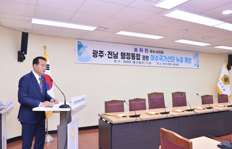 송 의원은 21일 오전 여수시의회 소회의실에서 기자회견을 열고 “광주·전남 통합은 단순한 행정구역 개편이 아니라 산업 구조와 일자리, 인구 흐름, 지역의 미래를 재편하는 중대한 결정”이라며 “여수국가산단을 중심으로 한 동부권 산업 뉴딜 없이 추진되는 통합은 실질적인 효과를 담보하기 어렵다”고 밝혔다.