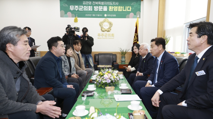 ![]() 21일 무주군청에서 열린 '도민과 함께하는 2026년 시군 방문'에 김관영 전북특별자치도지사와 황인홍 무주군수 및 참석자들이 도민과의 대화 시간을 가졌다. |