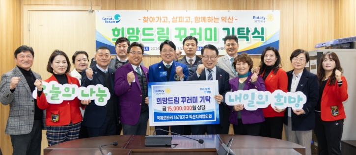 김성희 총재는 "희망드림 꾸러미 지원 사업을 통해 도움이 필요한 이웃들에게 작은 희망과 위로를 전할 수 있어 뜻깊게 생각한다"며 "앞으로도 익산시와 손잡고 지역사회에 온기를 전하는 나눔 활동을 지속해 나가겠다"고 말했다.